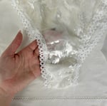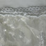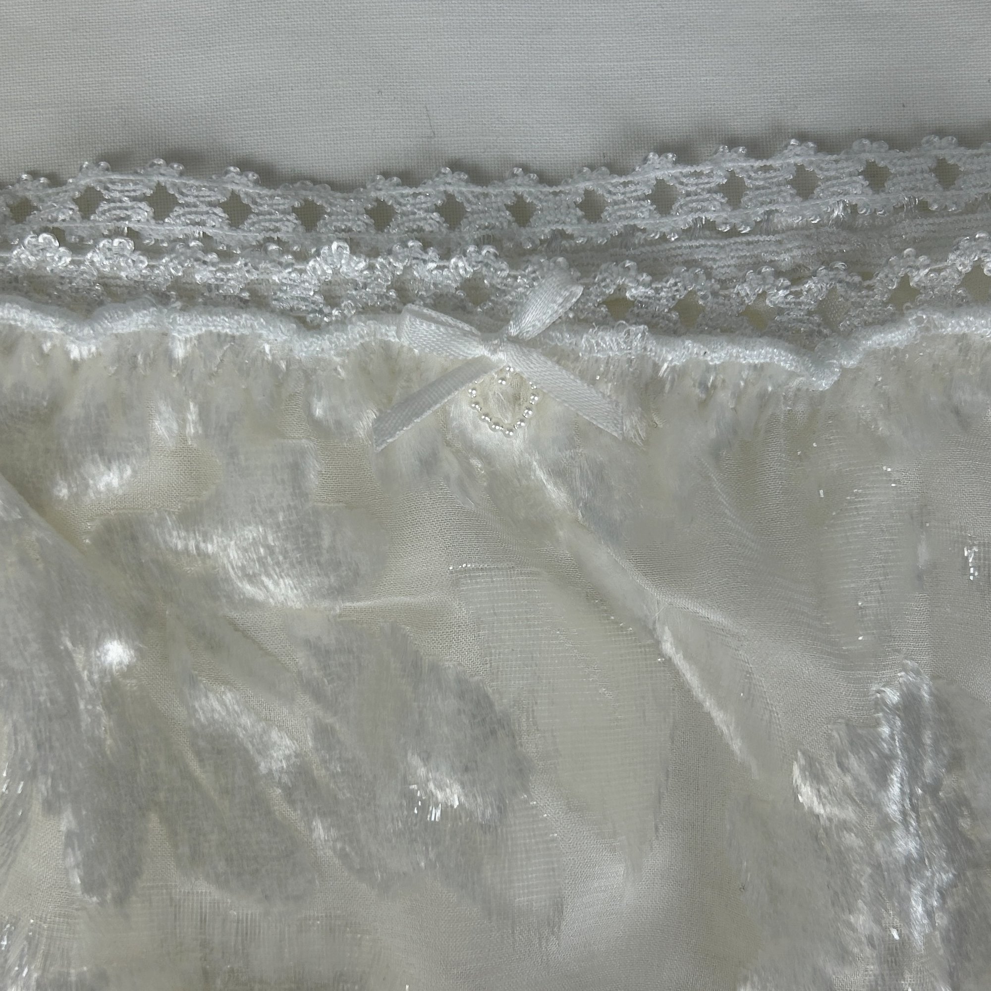 La matière utilisée provient d'un deadstock d'une manufacture nantaise premium, il s'agit d'un velours dévoré de soie, d'où sa brillance et transparence par zones. Les élastiques dentelle sont neufs et proviennent d'une mercerie marseillaise.