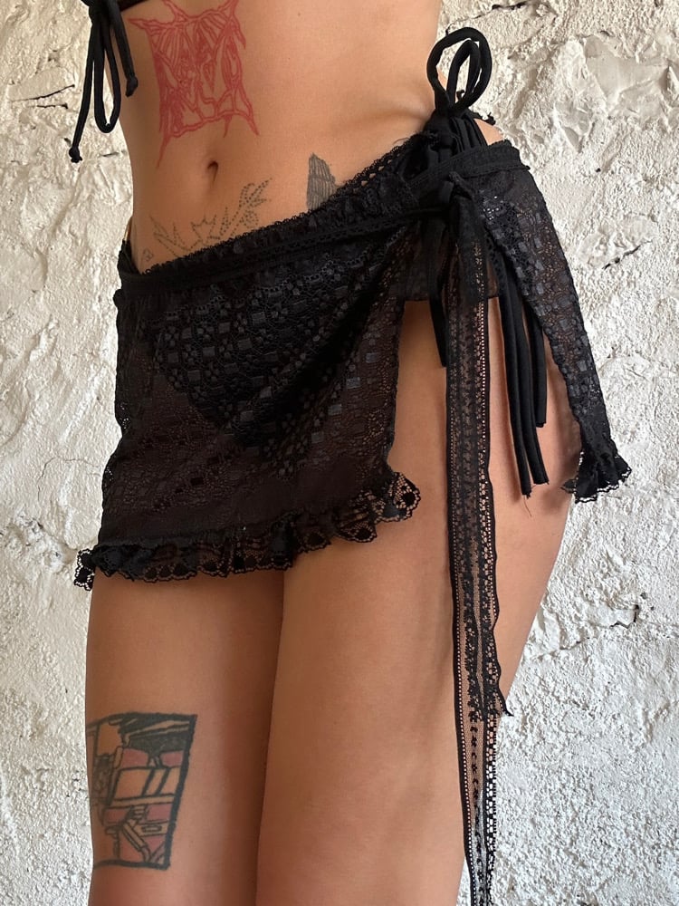 Jupe à nouer en dentelle de Calais noire