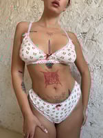 Une brassière triangle confortable pour une jolie lingerie du quotidien. Sa pointelle de coton imprimée de cerises, parfaite pour le printemps, est toute de douce au toucher.